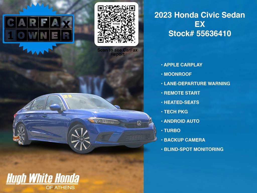 STOCK# 55636410 PRICED BELOW MARKET RETAIL VALUE! Hugh White Honda Athens has this 2023 Honda Civic Sedan EX ready for sale today. Don't forget Hugh White Honda Athens WILL BUY OR TRADE FOR YOUR USED CAR, USED TRUCK and/or USED SUV!