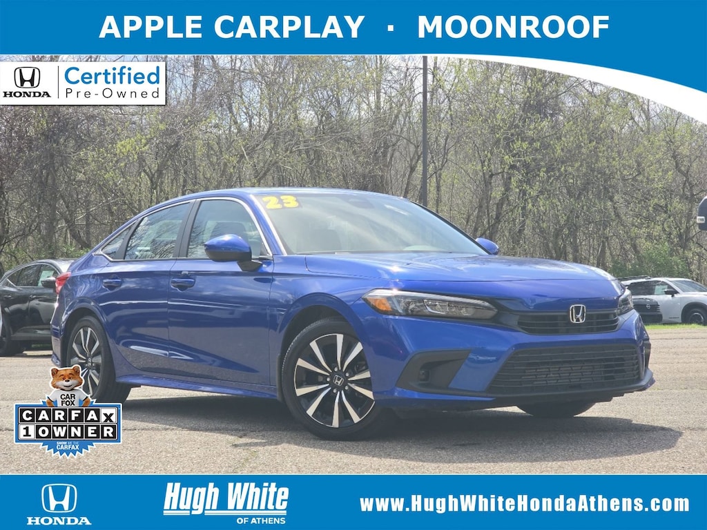 DESIRABLE FEATURES: This popular Honda Certified 2023 Civic Sedan EX features: MOONROOF, APPLE CARPLAY, LANE-DEPARTURE WARNING, REMOTE START, ANDROID AUTO, HEATED-SEATS, TECH PKG, TURBO, BACKUP CAMERA, BLUETOOTH, BLIND-SPOT MONITORING, ALLOY-WHEELS, MULTI-ZONE AC, Push-Button Start, Remote entry, and is available today at our Athens, OH Honda dealership near you.