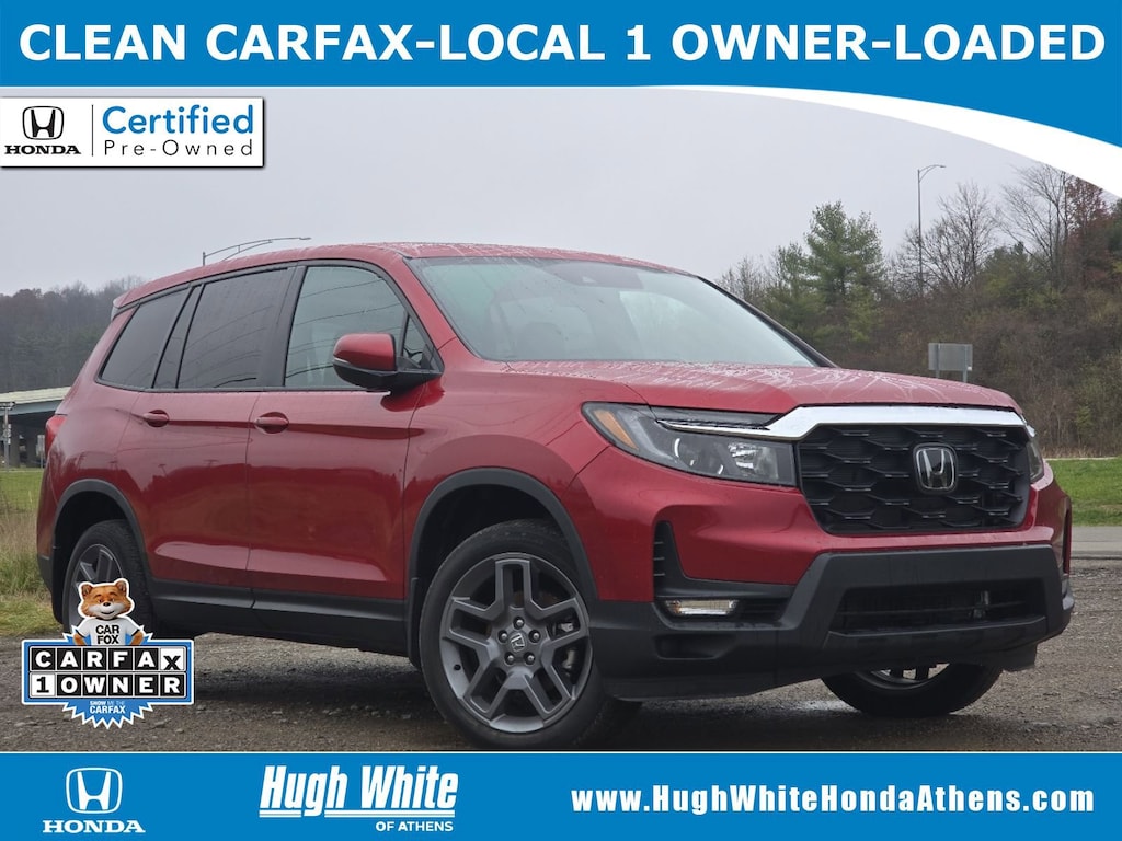 Honda Certified CARFAX 1-Owner, Free CARFAX report! DESIRABLE FEATURES: This popular Honda Certified 2023 Passport EX-L AWD features: * LOCAL 1-OWNER *, * LOCAL-TRADE-IN *, * CARFAX 1-OWNER *, MOONROOF, SOLD HERE NEW, APPLE CARPLAY, AWD, LEATHER, CLEAN CARFAX, HEATED-SEATS, LANE-DEPARTURE WARNING, REMOTE START, ANDROID AUTO, TECH PKG, POWER LIFT-GATE, HANDS-FREE LIFTGATE, BACKUP CAMERA, BLUETOOTH, BLIND-SPOT MONITORING, MULTI-ZONE AC, SiriusXM, Remote entry, and is available today at our Athens, OH Honda dealership near you.