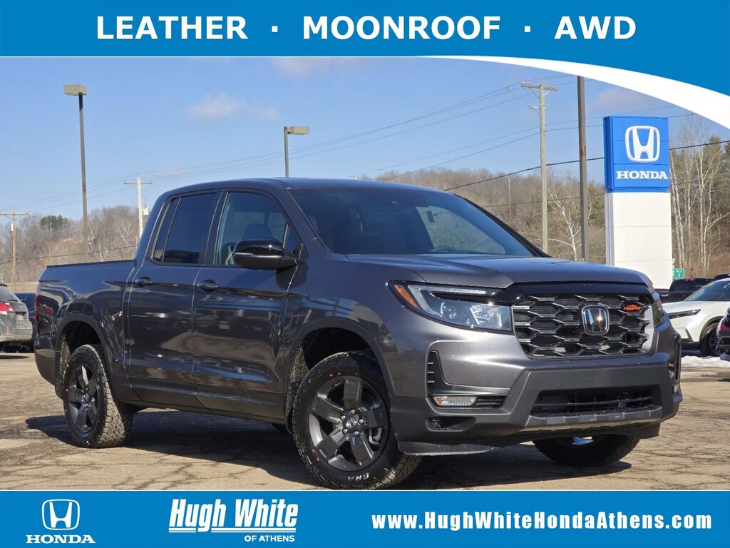 DESIRABLE FEATURES: LEATHER, MOONROOF, AWD, NAVIGATION, TECH PKG, HEATED-SEATS, LANE-DEPARTURE WARNING, REMOTE START, HEATED-STEERING WHEEL, KEYLESS-START, BLUETOOTH, BLIND-SPOT MONITORING, BACKUP CAMERA, HOMELINK, MULTI-ZONE AC, ALLOY-WHEELS, FOG LAMPS, WiFi Hotspot, SiriusXM, Remote entry. Your new 2026 Honda Ridgeline TrailSport is one of 19 other models like this in stock Athens drivers will find available to test drive at our new vehicle showroom in Athens, OH. This Honda Ridgeline is perfect for any ones car needs in our neighboring communities of Athens, OH.TECHNOLOGY FEATURES: This Honda Ridgeline for sale near Athens includes GPS System, Navigation System, Keyless Start, Garage Door Opener, Bluetooth Connection, HD Radio.