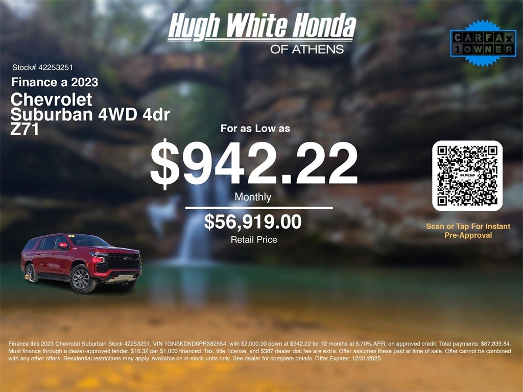 You can view our entire inventory at www.VisitHughWhite.com or, if you'd like to schedule a test drive, you can call us at 740-594-8555 or email us at leads@HughWhiteAthens.com. We look forward to assisting you.