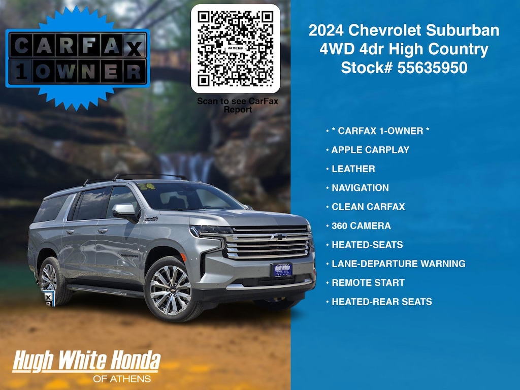 (844) 859-8630 TO SCHEDULE YOUR TEST DRIVE of this 2024 Chevrolet Suburban 4WD 4dr High Country. You can also visit us at 250 Columbus Road. Athens, OH 45701 to check it out in person! Our Hugh White Athens Used car dealership only sells used cars Athens, OH buyers can trust for safety and worry free driving.