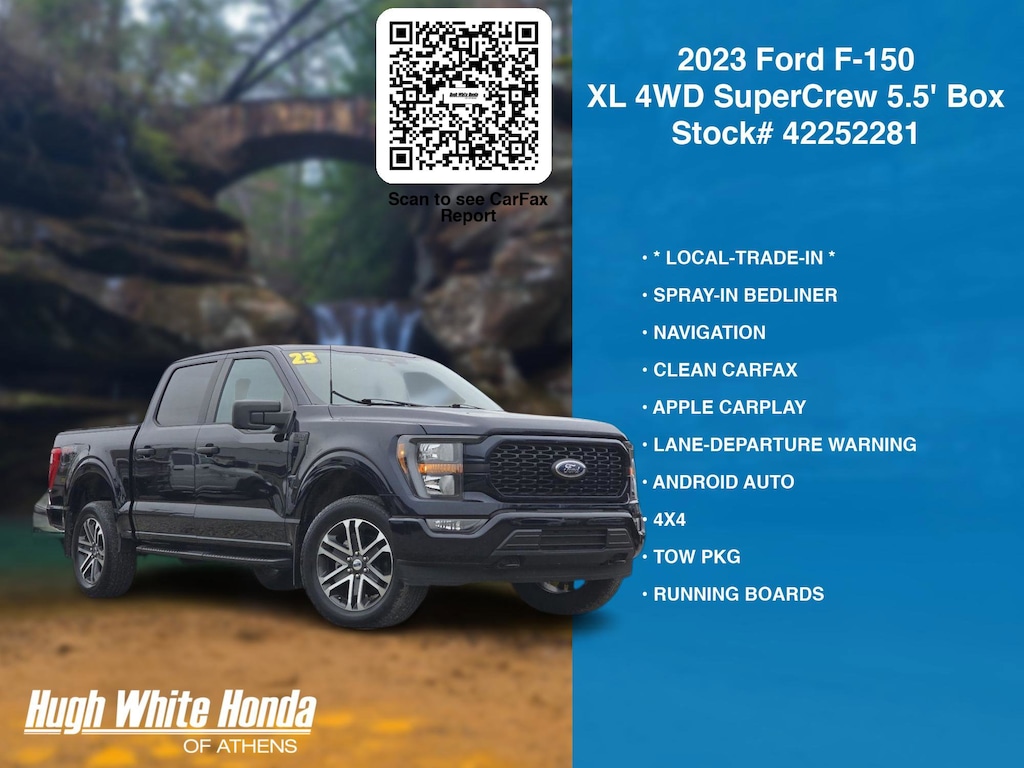 (844) 859-8630 TO SCHEDULE YOUR TEST DRIVE of this 2023 Ford F-150 XL 4WD SuperCrew 5.5' Box. You can also visit us at 250 Columbus Road. Athens, OH 45701 to check it out in person! Our Hugh White Athens Used car dealership only sells used cars Athens, OH buyers can trust for safety and worry free driving.