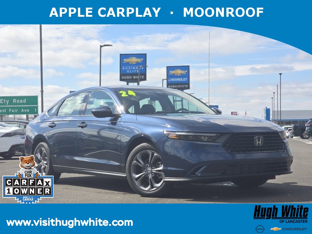 CARFAX VERIFIED 1-OWNER. Free CARFAX report! DESIRABLE FEATURES: APPLE CARPLAY, ANDROID AUTO, HEATED-SEATS, LANE-DEPARTURE WARNING, MULTI-ZONE AC, BLIND-SPOT MONITORING, BACKUP CAMERA, BLUETOOTH, ALLOY-WHEELS, Remote entry. Your 2024 Honda Accord Sedan EX is perfect for daily work or weekend road trips to our neighboring communities of Lancaster, Columbus, Newark, Pickerington, and Logan.