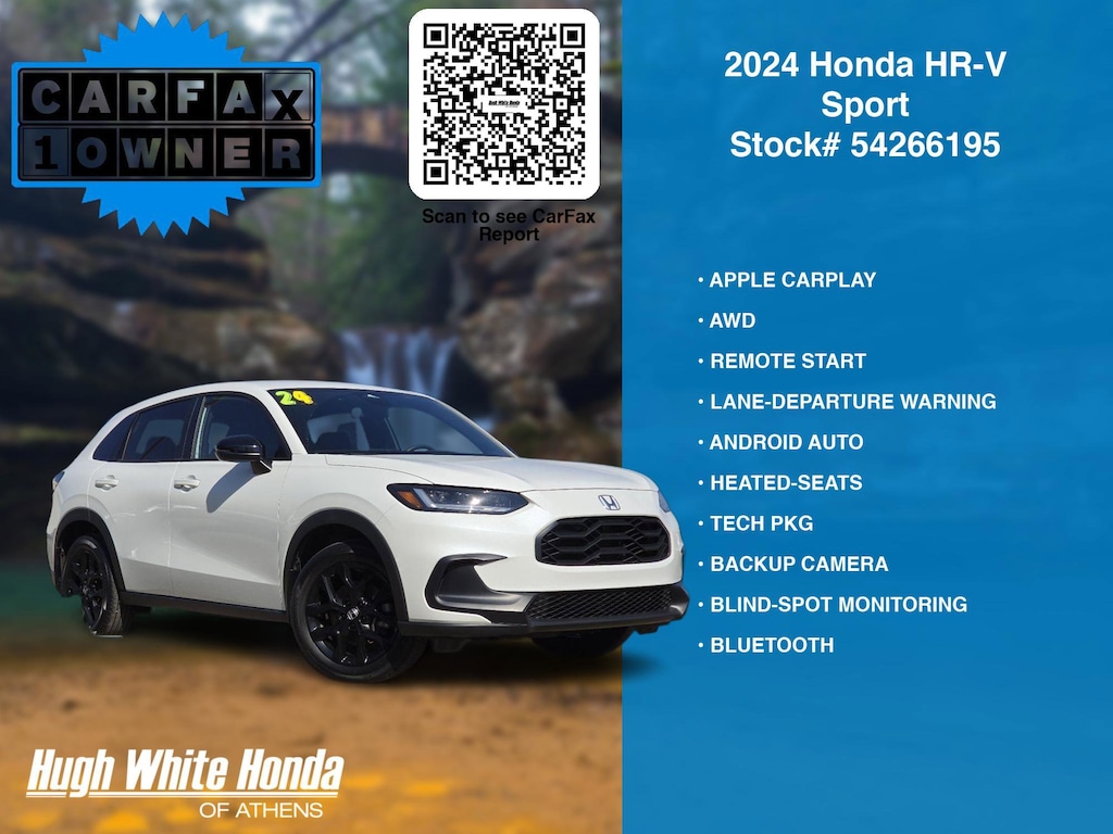(844) 859-8630 TO SCHEDULE YOUR TEST DRIVE of this 2024 Honda HR-V Sport. You can also visit us at 250 Columbus Road. Athens, OH 45701 to check it out in person! Our Hugh White Athens Used car dealership only sells used cars Athens, OH buyers can trust for safety and worry free driving.
