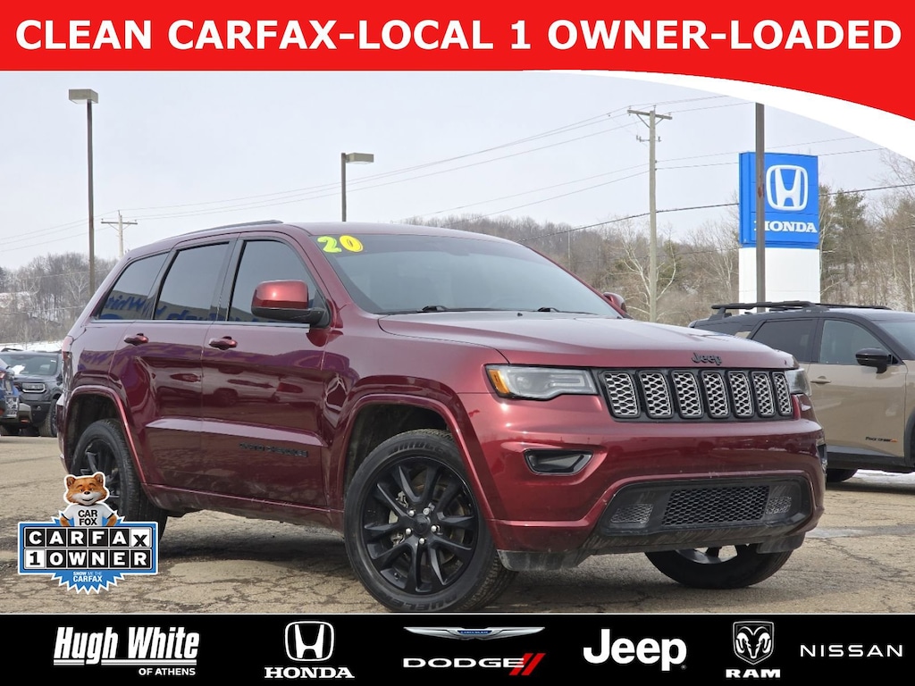 DESIRABLE FEATURES: * CARFAX 1-OWNER *, * LOCAL 1-OWNER *, * LOCAL-TRADE-IN *, NAVIGATION, APPLE CARPLAY, LEATHER TRIM SEATS, CLEAN CARFAX, MOONROOF, HEATED-SEATS, REMOTE START, TECH PKG, ANDROID AUTO, 4X4, HEATED-STEERING WHEEL, KEYLESS-START, BLIND-SPOT MONITORING, BLUETOOTH, VOICE CONTROLS, BACKUP CAMERA, FOG LAMPS, MULTI-ZONE AC, ALLOY-WHEELS, BACKUP-SENSORS, WiFi Hotspot, usb, SiriusXM, Remote entry. Your 2020 Jeep Grand Cherokee Altitude 4x4 is perfect for daily work or weekend road trips to our neighboring communities of Athens.