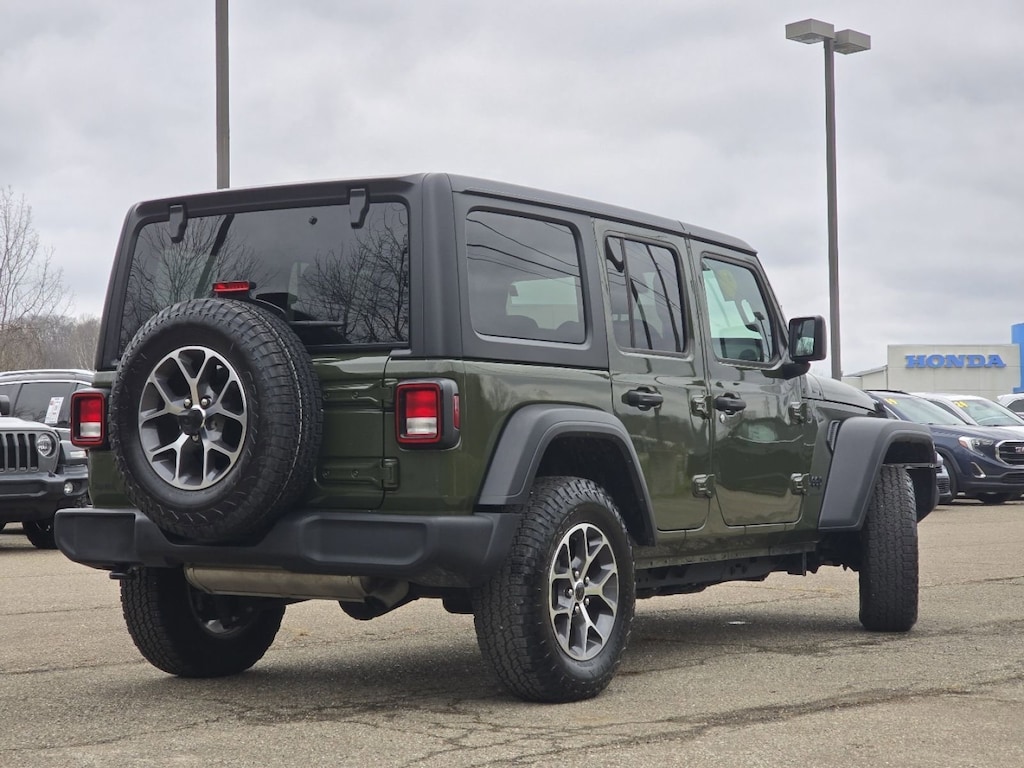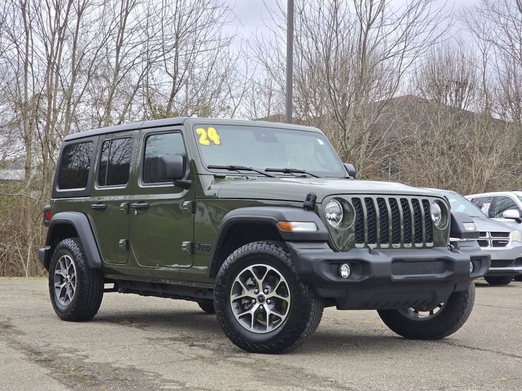 This 4x4 2024 Jeep Wrangler Sport S 4 Door 4x4 is one of those used cars Athens shoppers seek out for its Sarge Green Clearcoat exterior with a Black Interior. With 13,851 miles this 2024 Wrangler with a 2.0 l engine is your best buy near Athens, OH.
