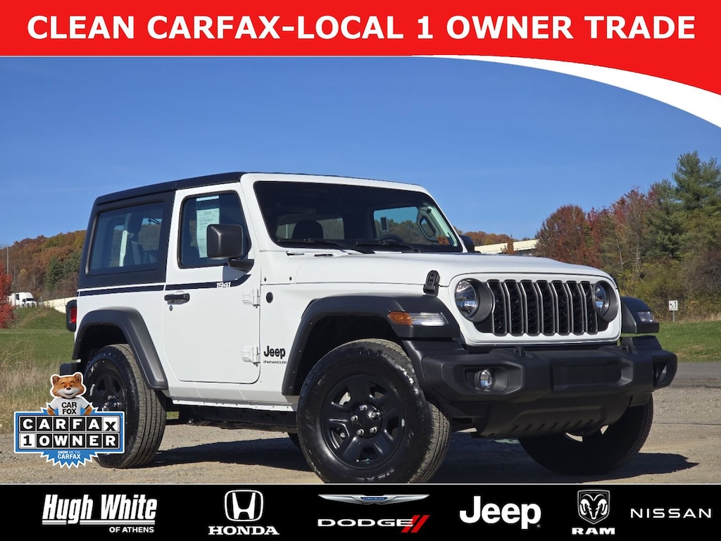 DESIRABLE FEATURES: * CARFAX 1-OWNER *, * LOCAL-TRADE-IN *, * LOCAL 1-OWNER *, APPLE CARPLAY, TECH PKG, ANDROID AUTO, 4X4, TOW PKG, KEYLESS-START, BACKUP CAMERA, HARDTOP AND HARD TOP COVER, BLUETOOTH, FOG LAMPS, WiFi Hotspot, Remote entry, SiriusXM. Your 2025 Jeep Wrangler Sport 2 Door 4x4 is perfect for daily work or weekend road trips to our neighboring communities of Athens.
