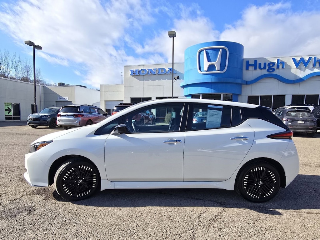 This fwd 2024 Nissan LEAF SV PLUS is one of those used cars Athens shoppers seek out for its Super Black/pearl White exterior with a Black Interior. With 344 miles this 2024 LEAF with a 0.0 engine is your best buy near Athens, OH.