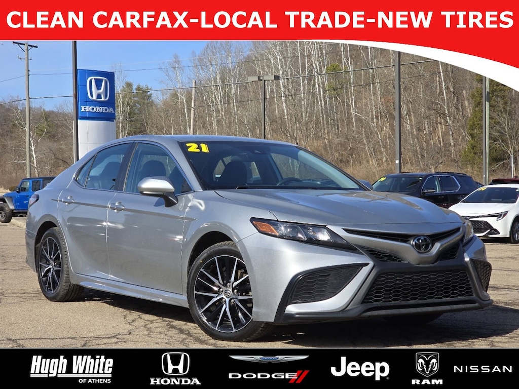 DESIRABLE FEATURES: * LOCAL-TRADE-IN *, CLEAN CARFAX, 4 NEW TIRES, APPLE CARPLAY, ANDROID AUTO, LANE-DEPARTURE WARNING, TECH PKG, BLUETOOTH, BLIND-SPOT MONITORING, BACKUP CAMERA, ALLOY-WHEELS, WiFi Hotspot, Remote entry, SiriusXM. Your 2021 Toyota Camry SE is perfect for daily work or weekend road trips to our neighboring communities of Athens.